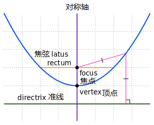 当抛物线方程顶点: (h, k),焦点:(x1, y1),则抛物线的顶点式方程: