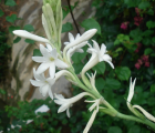 晚香玉(学名:Polianthes tuberosa),别名夜来香或月下香,是石蒜科(或龙舌兰科)晚香玉属的一种多年生球根开花植物。多年生草本,根状茎块状;线形叶子丛生,先端尖;花茎较长,上部呈总状花序,夏秋开白色花,有浓香味,晚上香味更浓。晚香玉花在晚上开花,在印度东部地区,被人们称作“Ratkirani”,意思就是“夜晚的女王”。